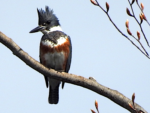 In February 2012 I began practicing photographing birds after sharing the photo of the Torogoz with cousin Brad, and then seeing Hooded Mergansers on a local pond. What follows is a result of my practice. Most of the photos were taken while I was walking for exercise in the neighborhood. I also took a photo of Belted Kingfisher with a fish in its mouth near the Little Patuxent River in March, but it was at a long distance and I got a better photo two years later. Similarly, I got out-of-focus photos of two Piliated Woodpeckers, and later got a better image.