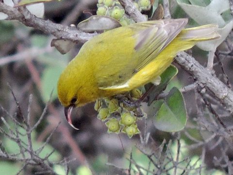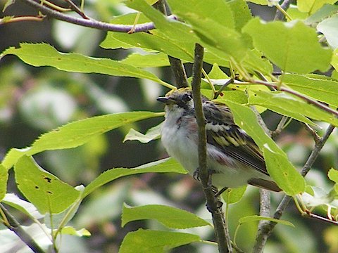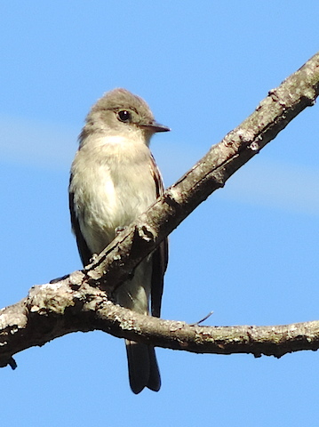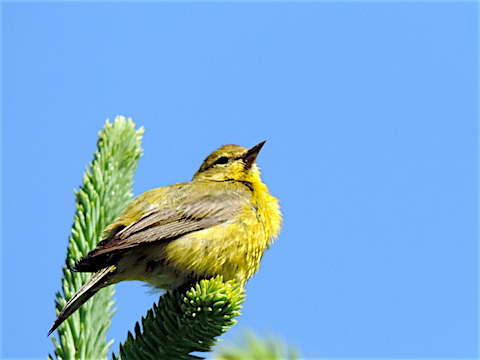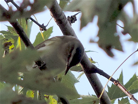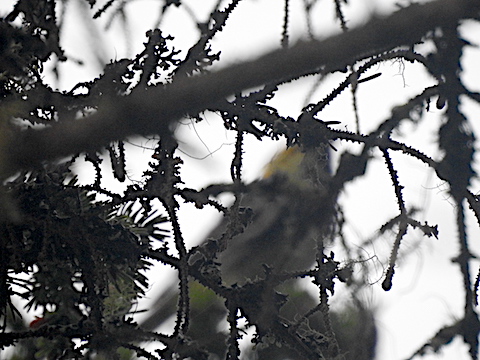 Maybe a female Black-throated Green Warbler seen high in a tree at Cobscook Bay State Park, Maine (July 2019) |