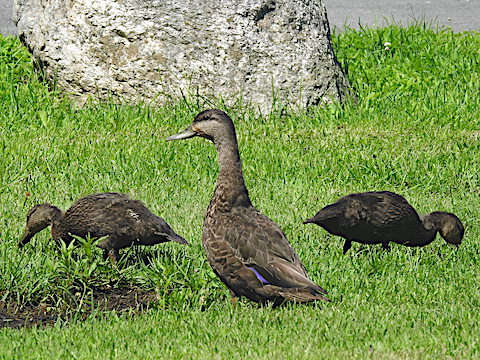 American Black Duck with two ducklings at Lake St. George (July 2019) |
