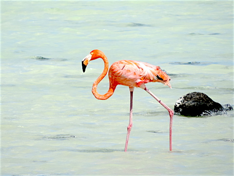 Flamingo in a lagoon at Punta Cormorãn, the Galápagos (2007) |