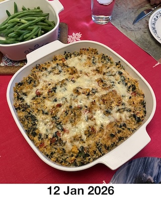 the 1/2 cup of shredded Swiss cheese. The meal filled the 2 1/2 quart casserole dish.