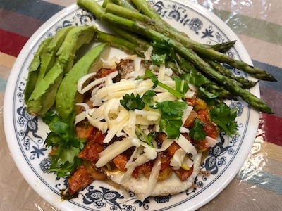 - Put avocado slices alongside the tortilla.